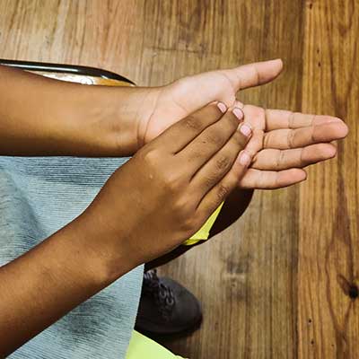 Percussão corporal, mãos nas costas da outra, créditos Meloteca